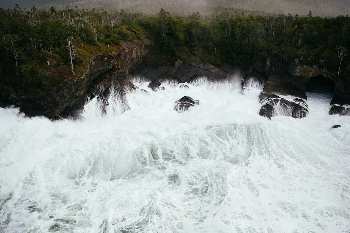 From places like Tofino and Ucluelet, winter storms send massive waves crashing into rocky shorelines while winds whip through old-growth rainforest just steps from the ocean. This isn’t something you hide from — it’s something you watch, safely, from clifftop trails, storm-proof lodges, and oceanfront windows.